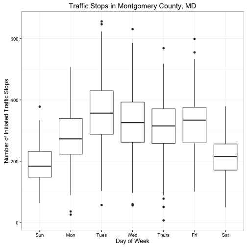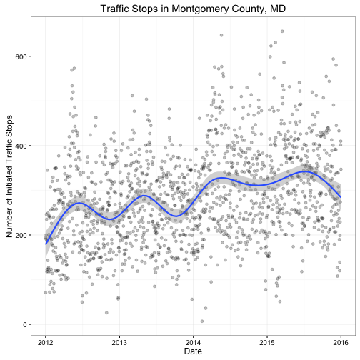 In order to test this argument, first we need data on traffic stops. Montgomery County, Maryland publishes an open dataset of all traffic stops initiated within the county. While not generalizable to all police forces, this at least gives us the opportunity to see if our hypothesis holds up to a basic test. Furthermore, the data is relatively comprehensive with records dating back to 2012. Combine this with historical weather data from the region, and we can begin to unpack this puzzle.